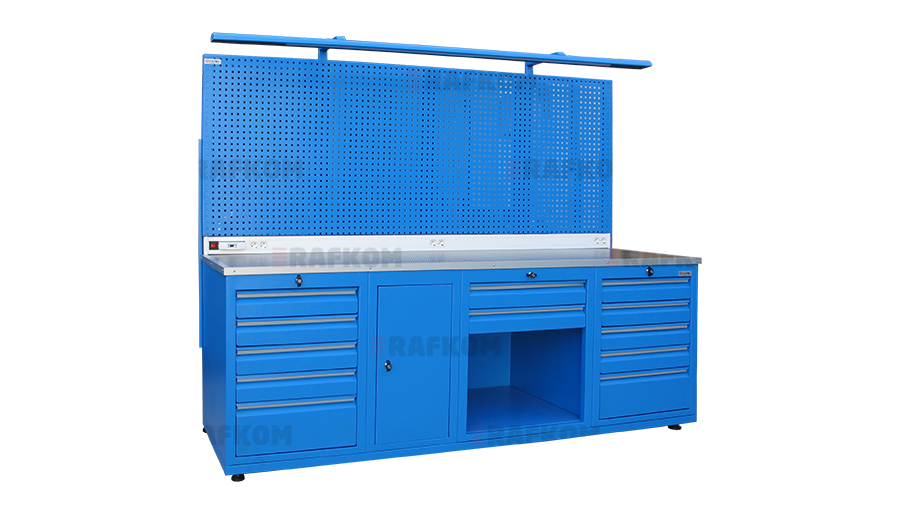 • İsteğe bağlı çekmece grupları üretilebilir, istenilen ölçüde tezgah tasarımı yapılabilir ve istenilen RAL kodunda statik boya uygulanabilir.